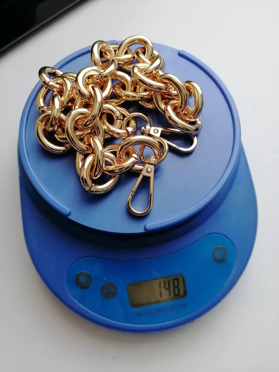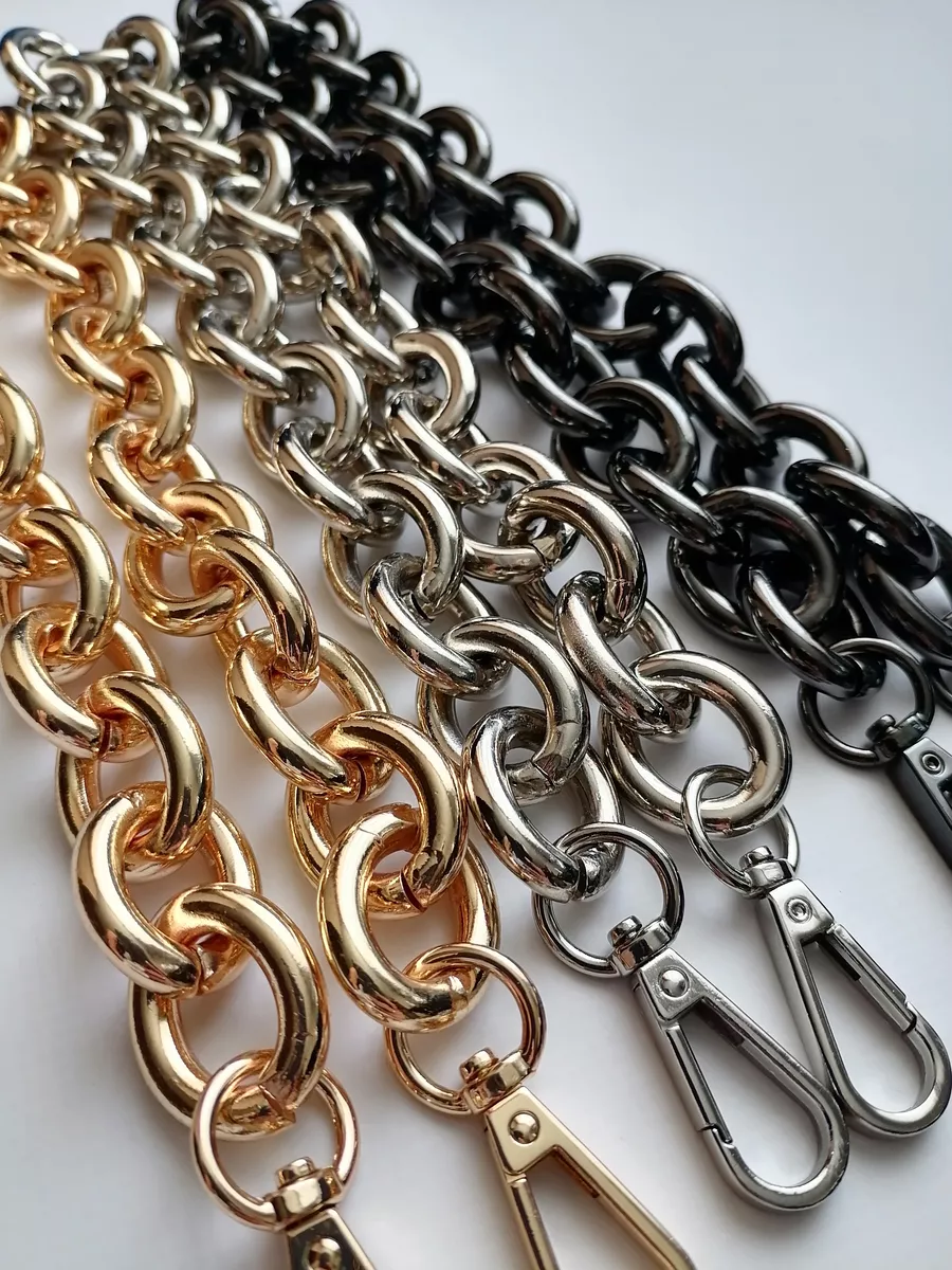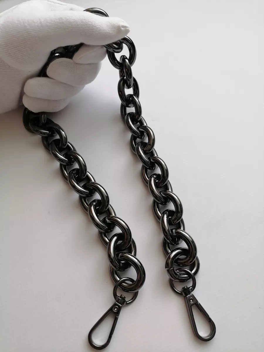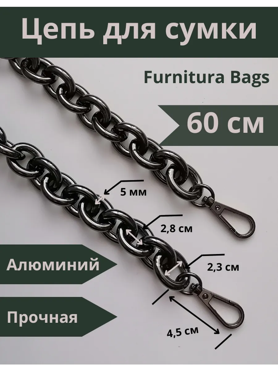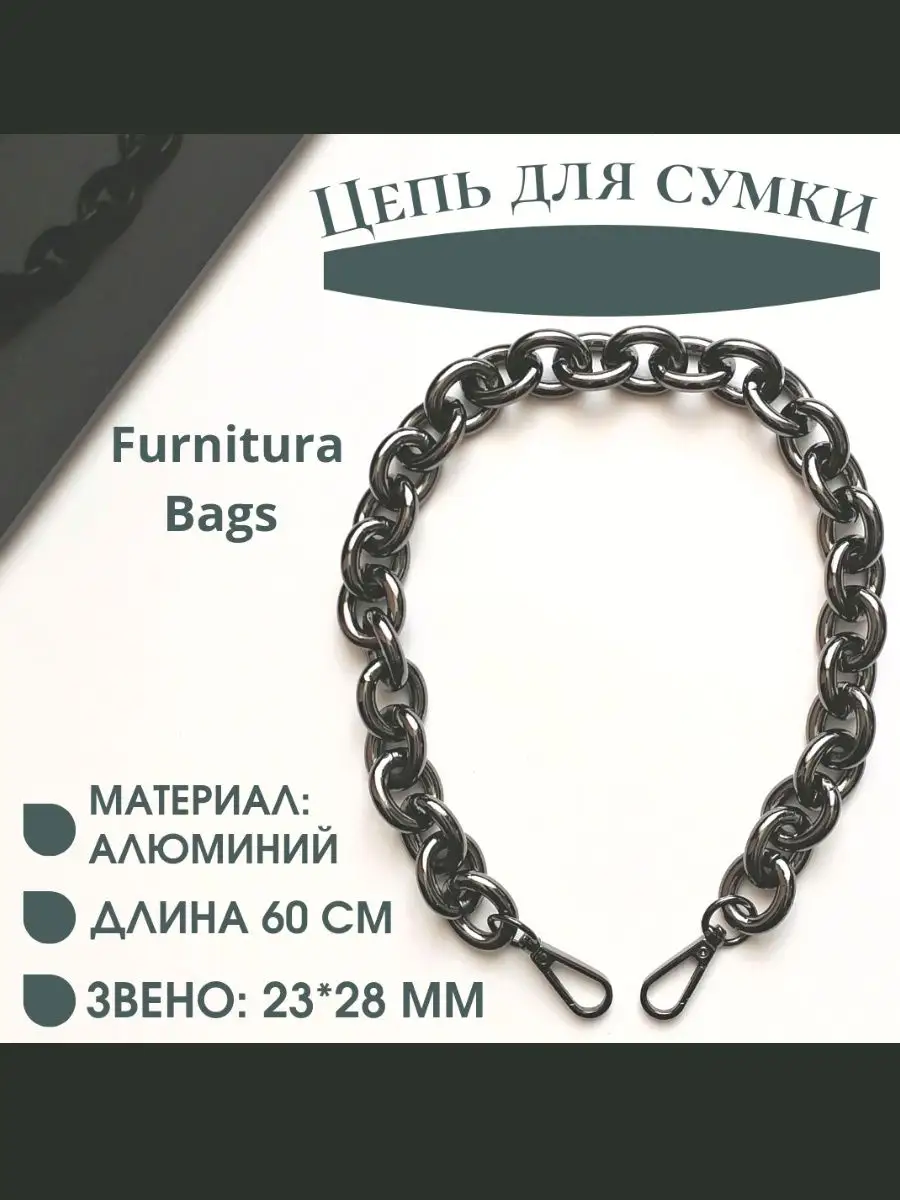 Алюминиевая крупная цепь для сумок, готовая с карабинами. Вес цепочки 148 гр. Длина 60 см с карабинами. Звено 2,3*2,8 см. Толщина звена 5 мм. Тяжелая, прочная, звенья разъемные. Цепочка для сумки – это важная деталь, которая часто подвергается значительным нагрузкам, механическим воздействиям и находится в постоянном контакте с ладонью. И, конечно, такие цепочки приятно преподнести в качестве подарка маме, сестре, любимой жене или подруге. В мире моды не было такого периода, когда бы сумка на цепочке не попадала на подиумы недели моды. Это дизайн, не подвластный времени, и с каждым годом он модернизируется и эффектно обновляется. Цепочки для сумочек могут быть не только красивыми, но и комфортными в носке. Осталось подобрать красивую ручку-цепочку и восхищаться шедевром. Можно настроить длину по своему усмотрению. Форма звена позволяет легко отстегнуть и переставить. Обращаем ваше внимание, что фото не передает реальные размеры звена цепочки. Перед оформлением заказа, пожалуйста убедитесь, что указанные размеры действительно соответствуют вашим ожиданиям. Фурнитура для сумок, цепь для рукоделия, ручка для сумки. цепочка для сумки, ремень для сумки.