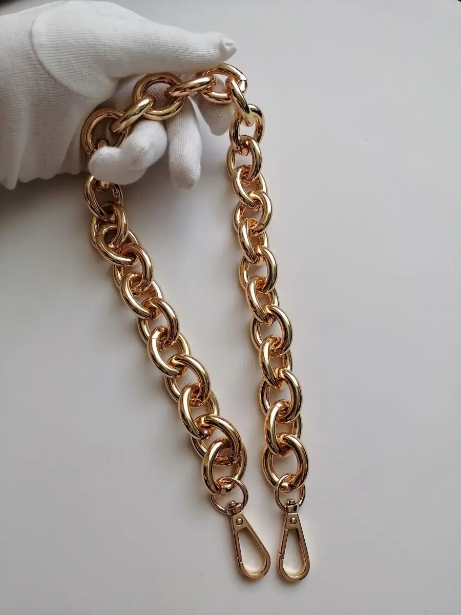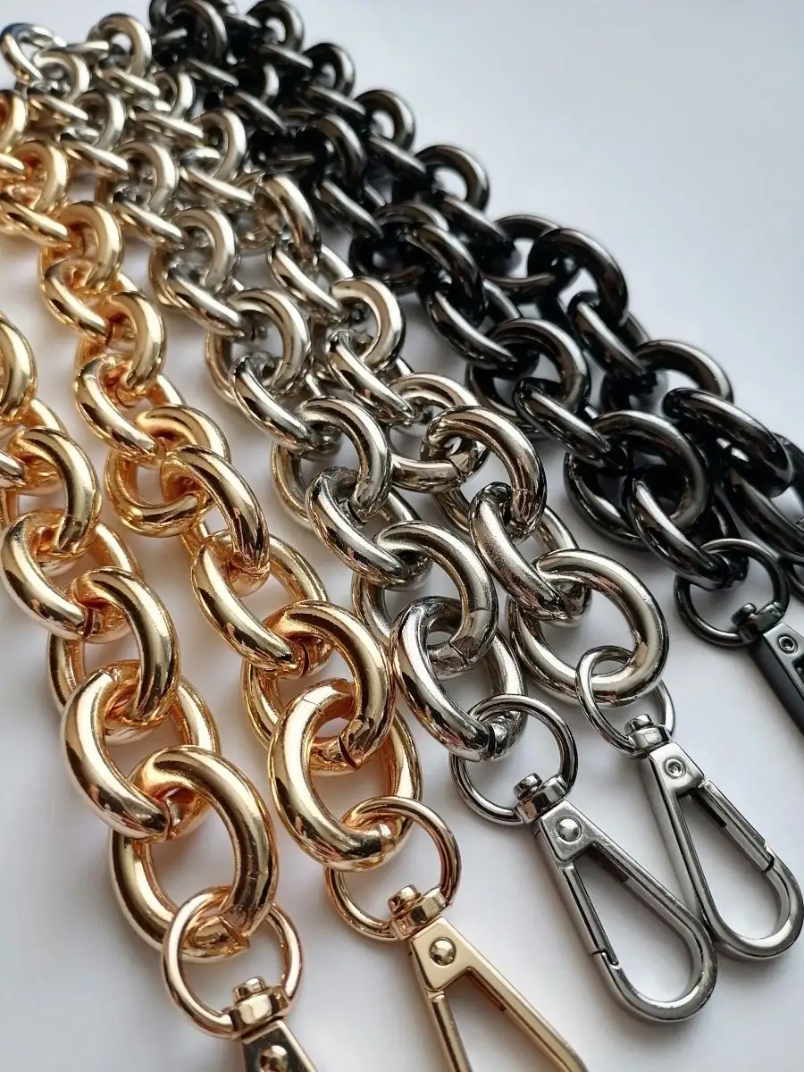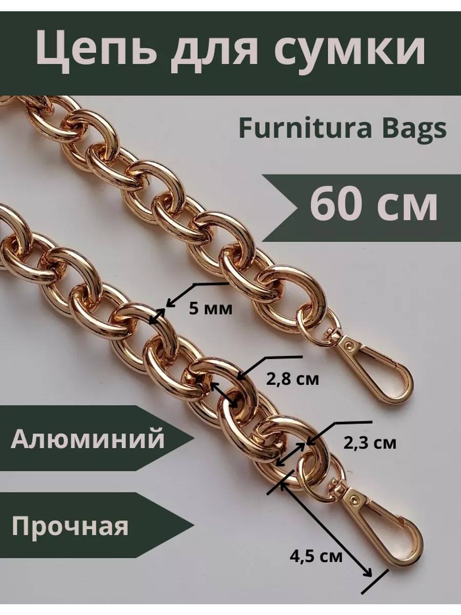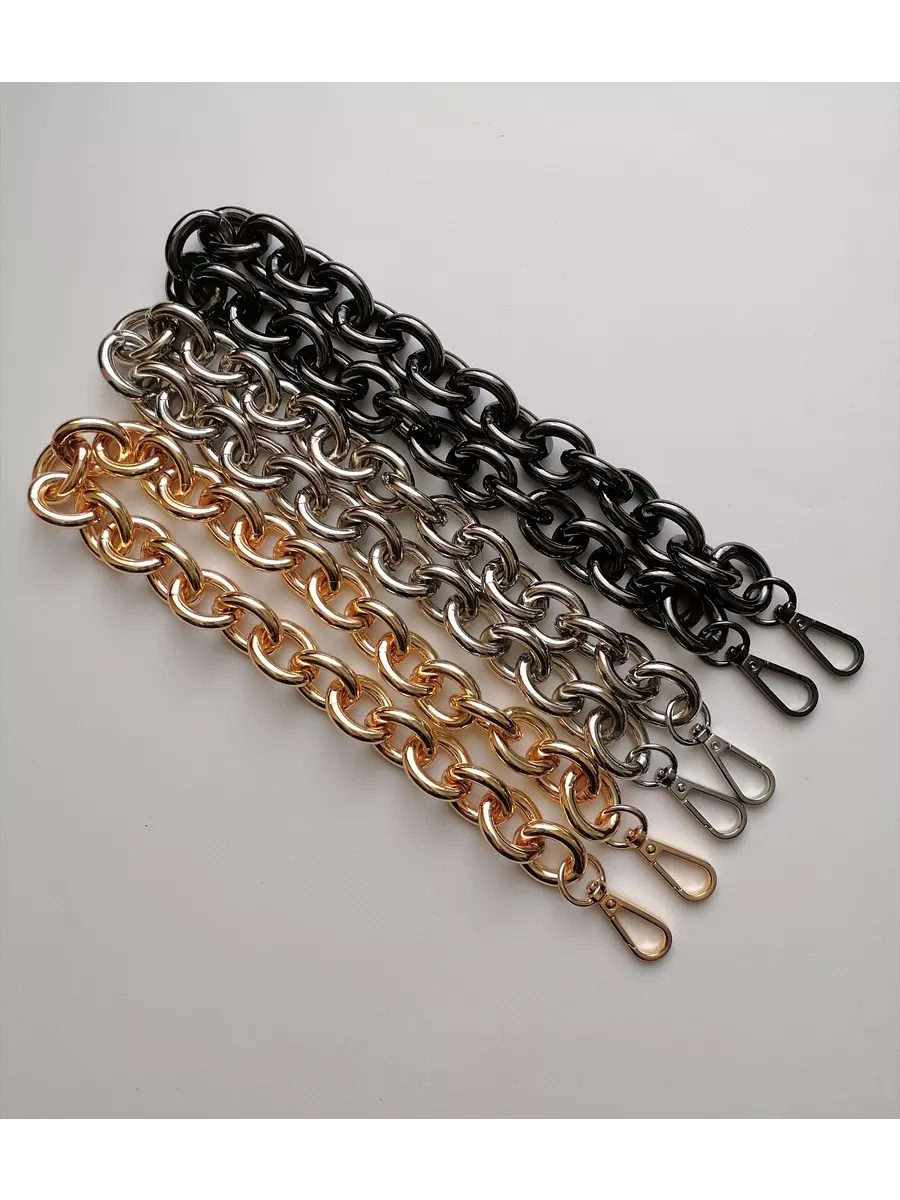 Алюминиевая крупная цепь для сумок, готовая с карабинами. Вес цепочки 148 гр. Длина 60 см с карабинами. Звено 2,3*2,8 см. Толщина звена 5 мм. Тяжелая, прочная, звенья разъемные. Цепочка для сумки – это важная деталь, которая часто подвергается значительным нагрузкам, механическим воздействиям и находится в постоянном контакте с ладонью. И, конечно, такие цепочки приятно преподнести в качестве подарка маме, сестре, любимой жене или подруге. В мире моды не было такого периода, когда бы сумка на цепочке не попадала на подиумы недели моды. Это дизайн, не подвластный времени, и с каждым годом он модернизируется и эффектно обновляется. Цепочки для сумочек могут быть не только красивыми, но и комфортными в носке. Осталось подобрать красивую ручку-цепочку и восхищаться шедевром. Можно настроить длину по своему усмотрению. Форма звена позволяет легко отстегнуть и переставить. Обращаем ваше внимание, что фото не передает реальные размеры звена цепочки. Перед оформлением заказа, пожалуйста убедитесь, что указанные размеры действительно соответствуют вашим ожиданиям. Фурнитура для сумок, цепь для рукоделия, ручка для сумки. цепочка для сумки, ремень для сумки.