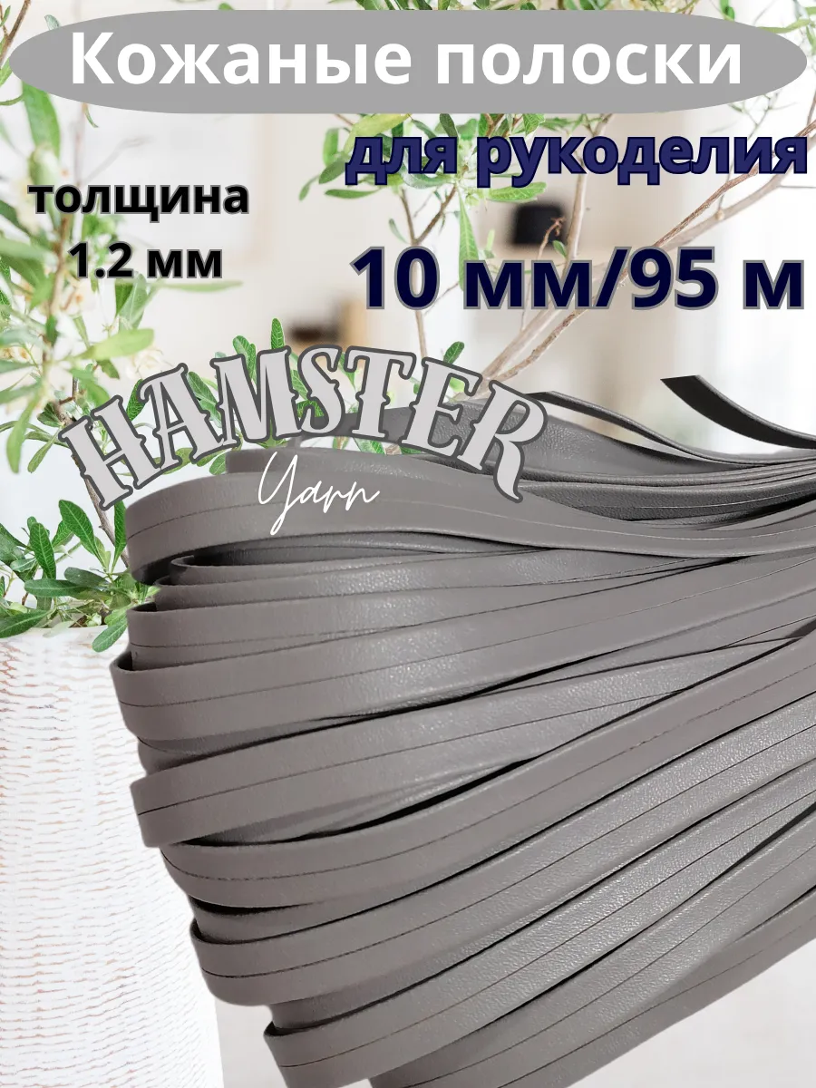 Полоски из кожи Hamster Yarn идеально подходят для любителей рукоделия и творческих проектов. Толщина 1.2 мм, ширина 10 мм, метраж 95 м (+-5%). Обращаем ваше внимание : метраж не цельный, в пасме встречаются разрывы. Цвет в реальности немного отличается от заявленного. Материал: полиуретановая кожа. PU кожа — это искусственный материал, созданный по особой технологии из полиуретана и отходов кожевенного производства. Полиуретан является уникальным материалом, состоящий из синтетических полимеров. По своему строению и внешнему виду ткань имеет огромное сходство с натуральной кожей, однако, обладает большей прочностью, износостойкостью и в то же время меньше стоит.