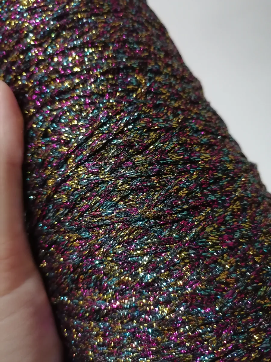 Пряжа с люрексом Hamster Yarn — идеальный выбор для тех, кто хочет добавить блеска и шика своим творениям. Эта мягкая на ощупь и прочная пряжа из полиэстера с добавлением люрекса идеально подходит для вязания, изготовления сумок, одежды, кукол и игрушек, аксессуаров, а также кружевоплетения. Насыщенный цвет пряжи придаст вашим изделиям неповторимый блеск и праздничное настроение. Длина намотки 3750 метров позволит вам воплотить в жизнь даже самые масштабные проекты. Толщина нити 1-1,5 мм в зависимости от цвета. Образец связан из 10 в.п. и равен 3,3 см.