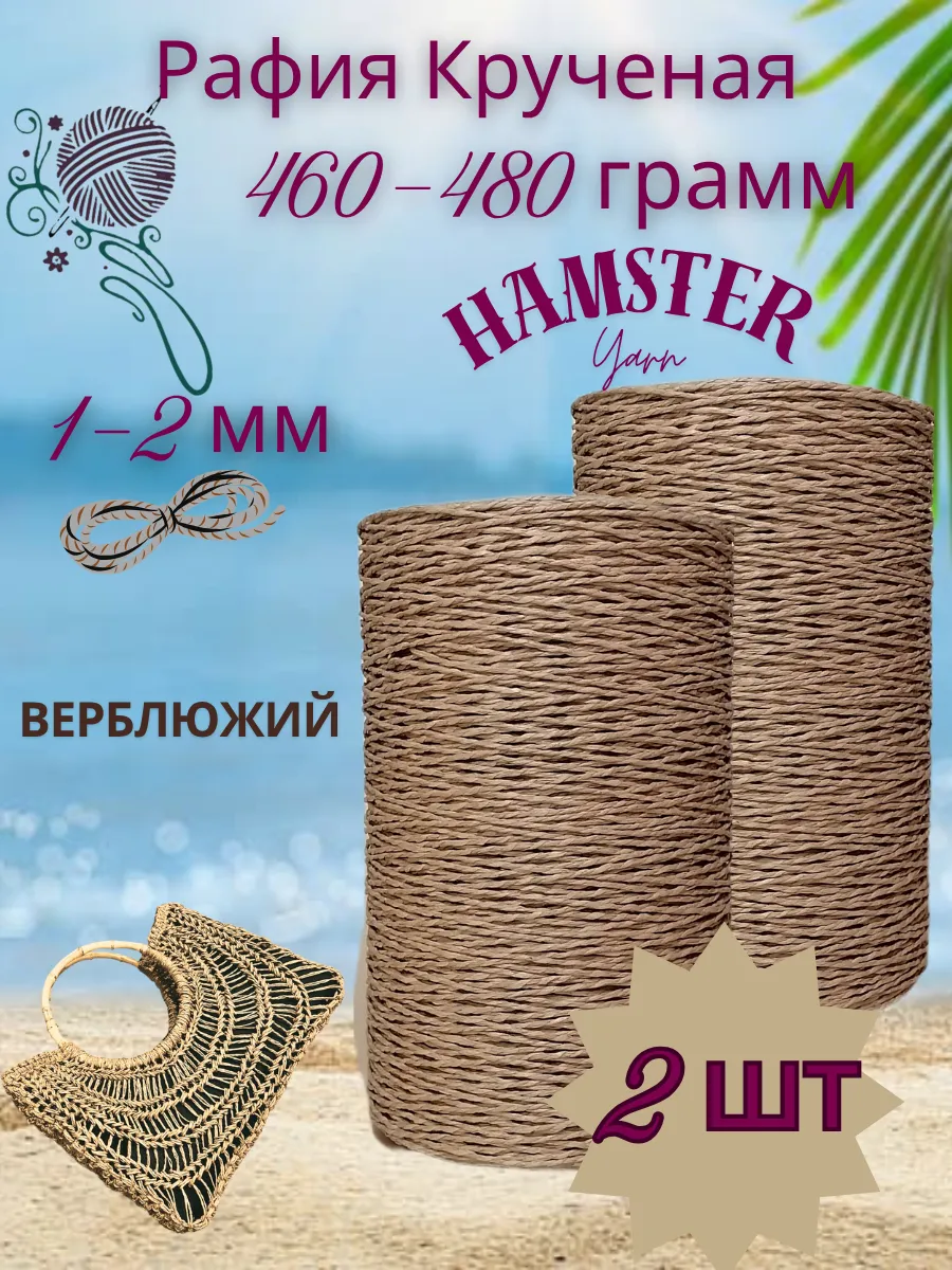 Крученая рафия Hamster Yarn 2 штуки в упаковке по 460 - 500 грамм. Единственный недостаток кручёной рафии — грубость, поэтому из неё лучше не вязать людям с чувствительной кожей рук. В зависимости от цвета толщина нити варьируется 1-2 мм. Мотки разные по объёму, встречаются узлы. Цвет на фото может отличаться от реального. Рафию из целлюлозы комфортно вязать спицами и крючком. Она хорошо распускается, поэтому ее можно использовать несколько раз. Самое популярное применение рафии — это вязание головных уборов: шляп, панам и т.д. Сумки из рафии прочные, хорошо держат форму. Сочетают в себе практичность и стиль, ведь hand made аксессуары на пике популярности. Вы можете изготовить стильную сумку из рафии просто обвязав уже готовую форму — пластиковую сетку-канву. Тапочки и сандалии из рафии — это оригинальная и актуальная вещь для лета. Они легкие и фактурные. Ковры из рафии — хороший вариант для тех, кто ищет оригинальную альтернативу традиционным коврам. Такие ковры прочные и легкие, имеют уникальную текстуру, могут использоваться в гостиных, спальнях и открытых пространства. Корзинки из рафии — универсальное и практичное изделие для дома. Вяжутся просто, а выглядят очень эффектно. Вещи из рафии неприхотливы. Но для того, чтобы такие изделия прослужили вам как можно дольше, мы не рекомендуем их стирать. Просто протрите изделие влажной мягкой тканью с мыльным раствором без биоактивных и отбеливающих веществ. Рафия крученая – это натуральный и универсальный материал, идеально подходящий для различных видов рукоделия. Изготовленная из целлюлозы, она обладает приятной текстурой и легко поддается обработке. Рафия крученая – это натуральный и универсальный материал, идеально подходящий для различных видов рукоделия. Она станет незаменимым помощником в вязании, макраме, а также при создании оригинальных аксессуаров для дома. Ее прочность и гибкость позволят воплотить в жизнь самые смелые дизайнерские идеи.