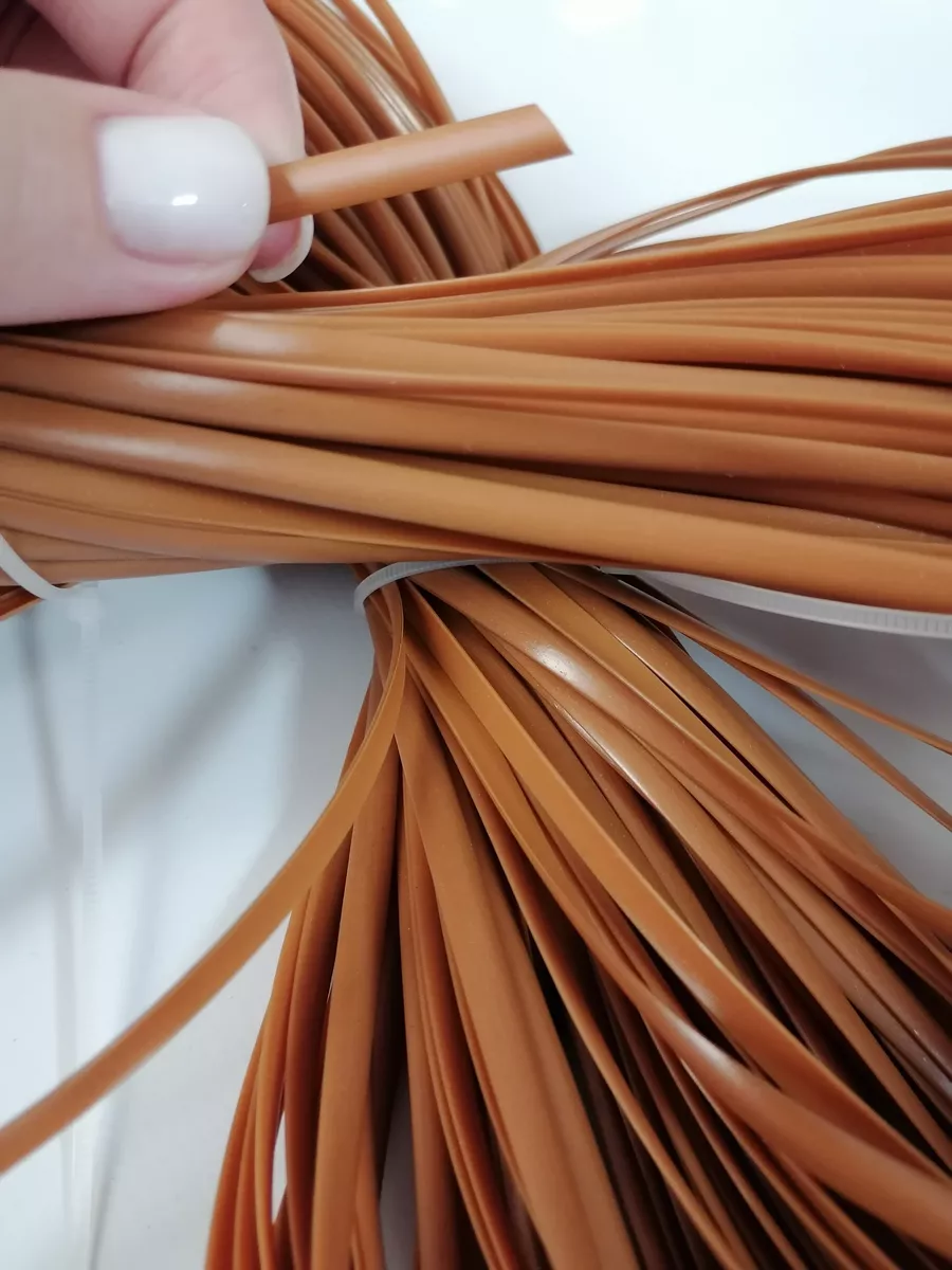 Искусственный ротанг или полиротанг идеально подходит для плетения в технике макраме сумок, корзинок, кашпо, корзин, садовой мебели, систем хранения для дома. Полиротанговая лента гладкая , мягкая легко плетется в узлы. Полиротанг хорошо держит форму. Длина ленты 120 - 130 метров (допустимая погрешность 5%), ширина профиля 5 мм. Полиротанг изготавливается из качественного экологичного полимера стойкого к любым атмосферным воздействиям, в частности к ультрафиолету - не выгорает и не разрушается. Наш ротанг для плетения отлично подойдет для начинающих мастеров, т.к он имеет мягкую структуру. А профессиональные мастера по плетению, отметят легкость в использовании и качество материала для плетения. Набор ротанга для рукоделия предлагает неограниченные возможности для вашего творчества.