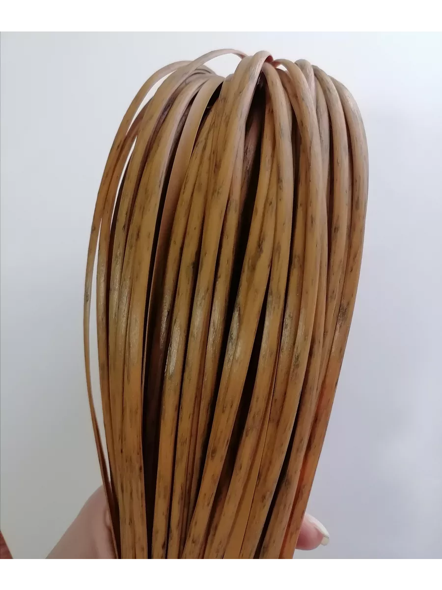 Искусственный ротанг или полиротанг идеально подходит для плетения в технике макраме сумок, корзинок, кашпо, корзин, садовой мебели, систем хранения для дома. Полиротанговая лента гладкая , мягкая легко плетется в узлы. Полиротанг хорошо держит форму. Длина ленты 130-140 метров (допустимая погрешность 5%), ширина профиля 5 мм. Полиротанг изготавливается из качественного экологичного полимера стойкого к любым атмосферным воздействиям, в частности к ультрафиолету - не выгорает и не разрушается. Наш ротанг для плетения отлично подойдет для начинающих мастеров, т.к он имеет мягкую структуру. А профессиональные мастера по плетению, отметят легкость в использовании и качество материала для плетения. Набор ротанга для рукоделия предлагает неограниченные возможности для вашего творчества.