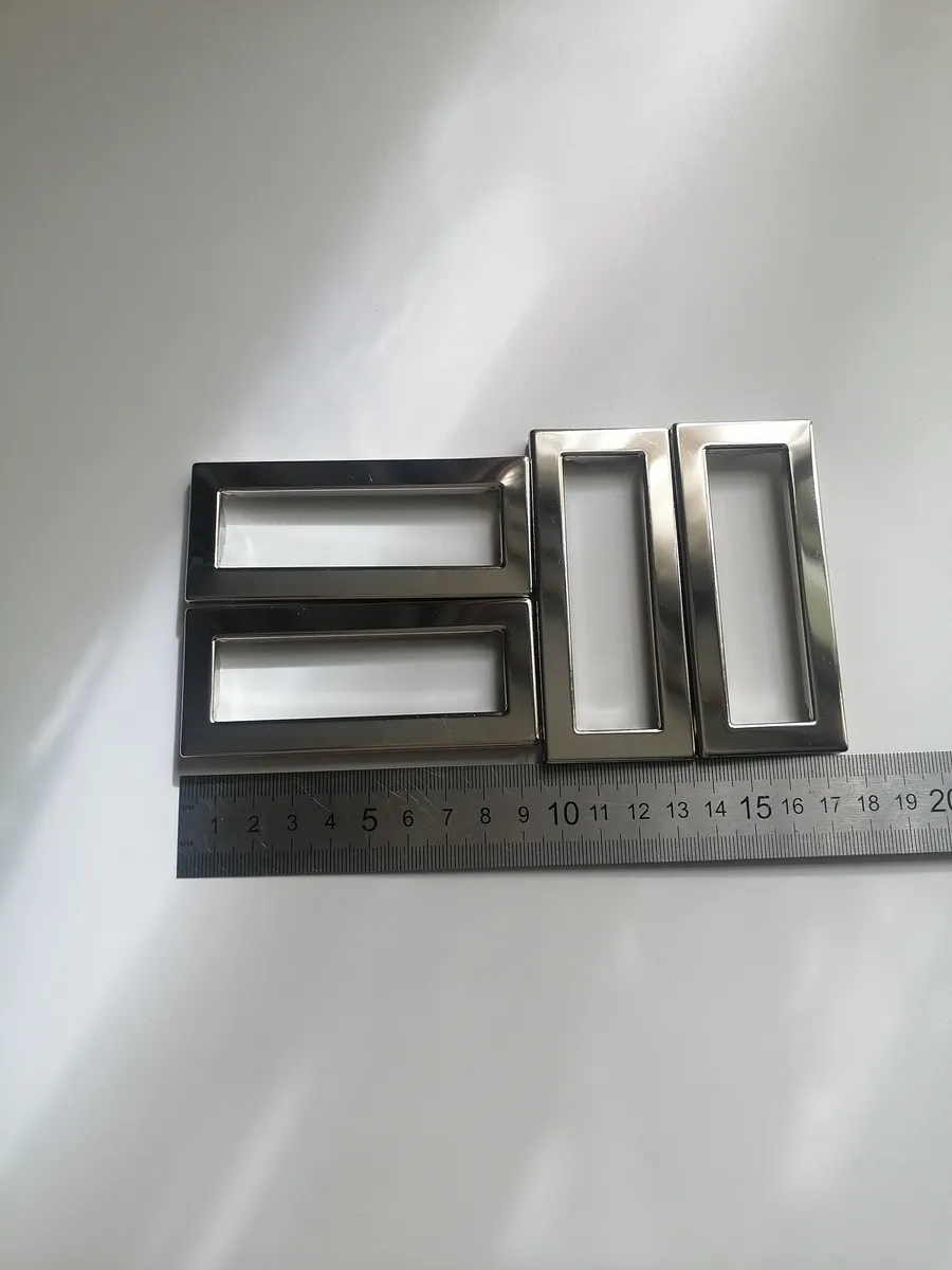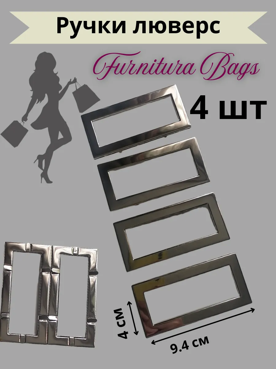 Ручки люверс прямоугольные 4 шт для сумки зажимные металлические, изготовленные из нержавеющей стали, станут стильным и прочным дополнением к вашей любимой сумке. Размер: 9,4*4см. Эта фурнитура для сумок станет отличным дополнением к вашему проекту и позволят внести индивидуальность в дизайн вашей сумки. Изготовленные из прочных материалов, металлические ручки гарантируют надежность и долговечность, что делает их идеальным выбором для фурнитуры. материал алюминий, вес 2 шт - 30гр.