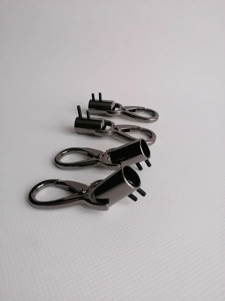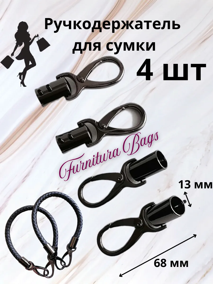 Ручкодержатель с карабином от Furnitura Bags — незаменимый помощник для рукодельниц, занимающихся вязанием, макраме или шитьем. Этот набор из 4 металлических карабинов станет надежным креплением для ручек ваших сумок, ремней и других аксессуаров. Благодаря прочному материалу и удобному дизайну, ручкодержатели прослужат вам долгое время, сохраняя аккуратный вид ваших изделий.