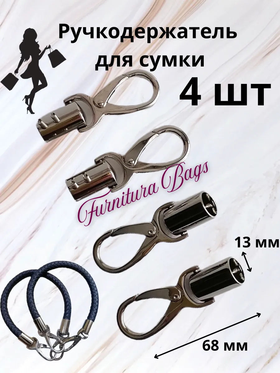 Ручкодержатель с карабином от Furnitura Bags — незаменимый помощник для рукодельниц, занимающихся вязанием, макраме или шитьем. Этот набор из 4 металлических карабинов станет надежным креплением для ручек ваших сумок, ремней и других аксессуаров. Благодаря прочному материалу и удобному дизайну, ручкодержатели прослужат вам долгое время, сохраняя аккуратный вид ваших изделий.