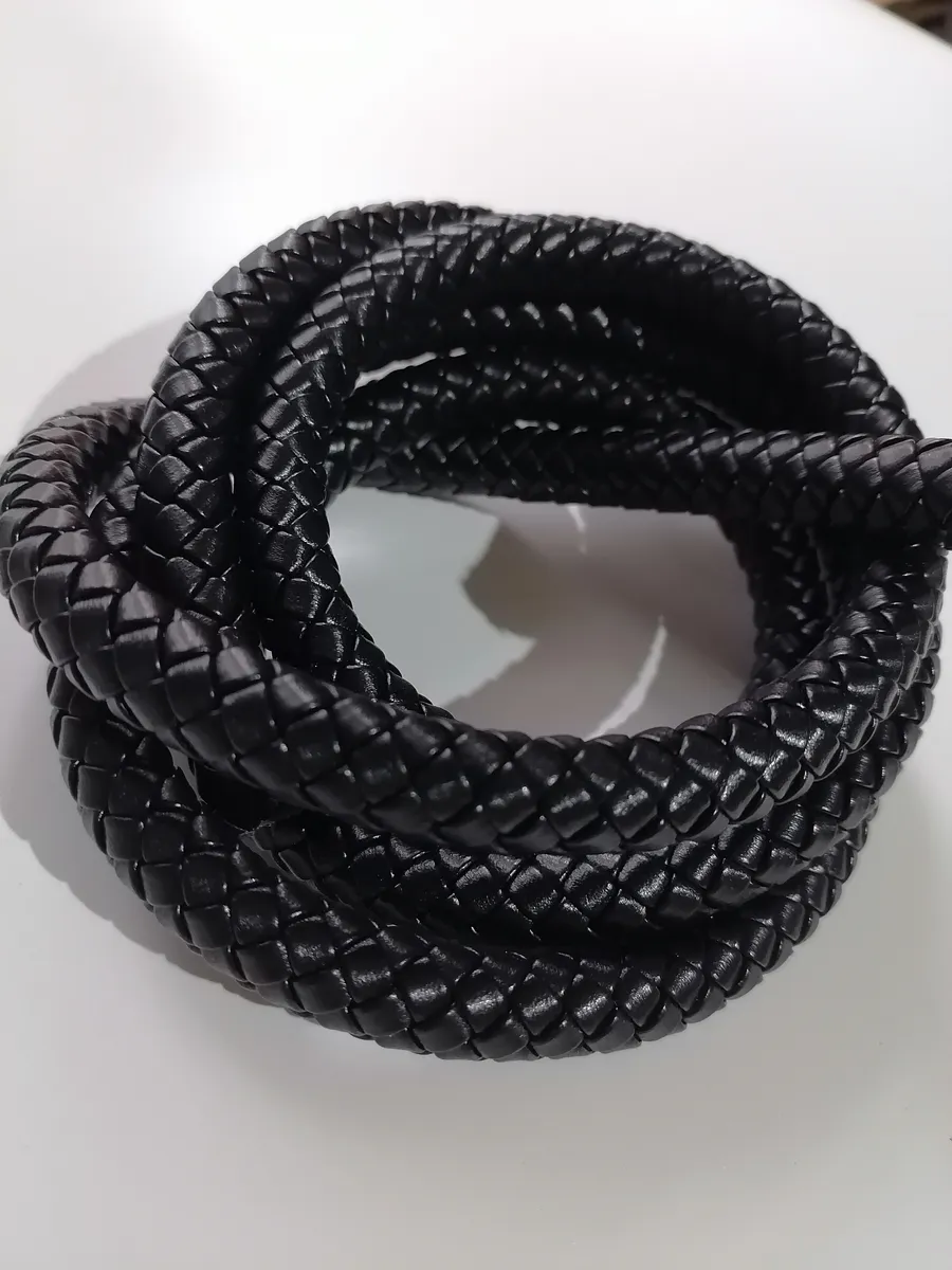 Шнур кожаный плетеный - это стильный и прочный материал, идеально подходящий для воплощения ваших творческих идей. Толщина 13 мм. Структура покрытия приближена к лакированному. Изготовленный из качественного полиуретана, он имитирует натуральную кожу, при этом обладая высокой прочностью и долговечностью. Плетеная структура шнура придает ему уникальный внешний вид, делая его идеальным для создания ручек, украшений, аксессуаров для дома. Длина намотки 1.5 метра предоставит вам достаточно материала для реализации ваших проектов.