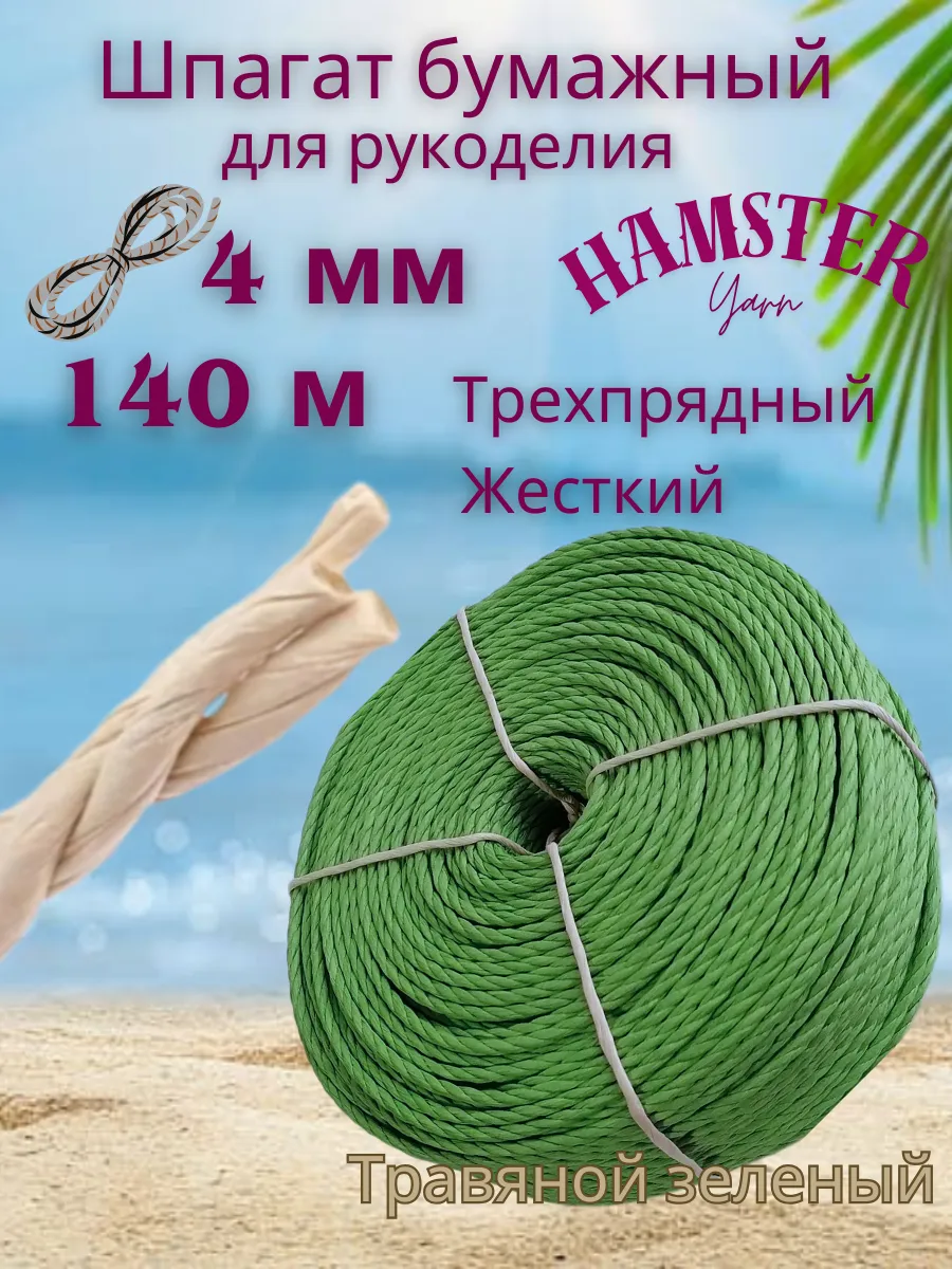 Шпагат бумажный - это универсальный материал для воплощения ваших творческих идей. Изготовленный из натуральной целлюлозы и крафт-бумаги, он обладает приятной текстурой и экологичной природой. Молочный цвет благодаря специальной обработке обладает водонепроницаемым свойством. Трёхпрядный, кручёный шпагат диаметром 4 мм и длиной 140 метров идеально подходит для макраме, плетения корзин и создания стильных аксессуаров для дома, домиков и когтеточек для домашних животных, а также в качестве декора. Его натуральный цвет придаст вашим изделиям особый шарм и уют.
