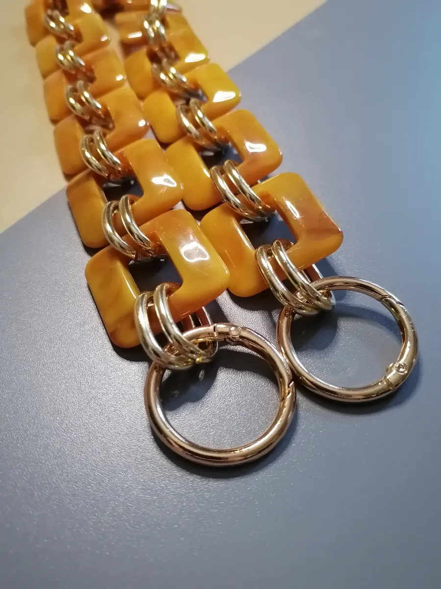 Цепь для сумки от Furnitura Bags - стильный и практичный аксессуар, который придаст вашему изделию неповторимый шарм. Длина 50 см, звено 32*32 мм. Изготовленная из прочного акрила и металла, цепь отличается прочностью и долговечностью. Ее элегантный дизайн дополнит любой стиль, от классического до современного. Цепь крупная легко крепится к сумке, обеспечивая удобство ношения и надежную фиксацию. Сделайте свой образ ярче и индивидуальнее с ручкой для сумок Furnitura Bags.