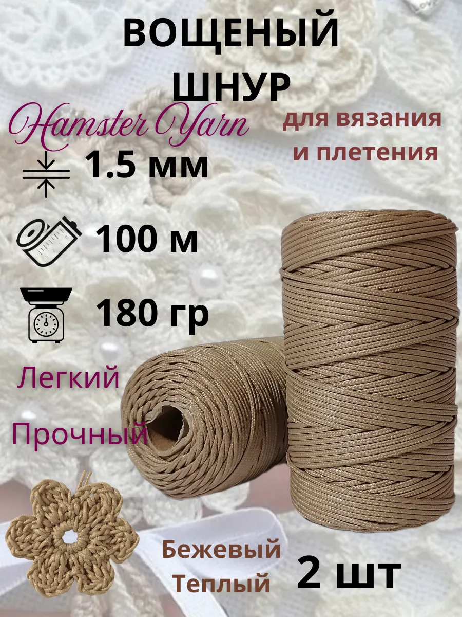 Вощеные шнуры Hamster Yarn - идеальный выбор для любителей рукоделия, ценящих качество и надежность. Этот набор из двух шнуров, каждый длиной 100 метров, изготовлен из прочного полиэстера, покрытого воском, что придает ему особую гладкость и прочность. Шнур диаметром 1,5 мм подходит для вязания, макраме и создания стильных аксессуаров для дома. Веревка позволит реализовать самые смелые дизайнерские идеи.