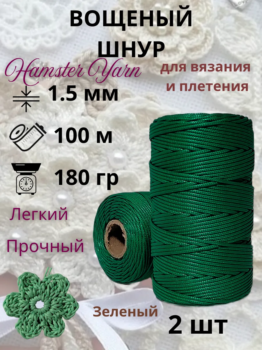Вощеные шнуры Hamster Yarn - идеальный выбор для любителей рукоделия, ценящих качество и надежность. Этот набор из двух шнуров, каждый длиной 100 метров, изготовлен из прочного полиэстера, покрытого воском, что придает ему особую гладкость и прочность. Шнур диаметром 1,5 мм подходит для вязания, макраме и создания стильных аксессуаров для дома. Веревка позволит реализовать самые смелые дизайнерские идеи.